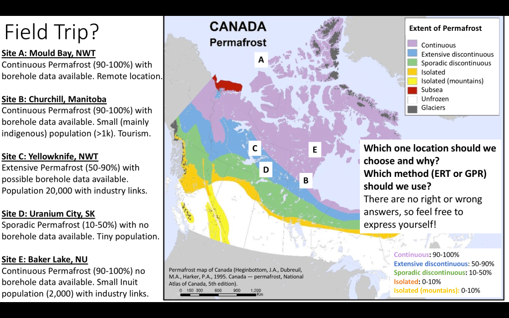 Write a research grant. In no more than 2 pages, describe your plan for monitoring Canadian Permafrost at a specific location using geophysical techniques.