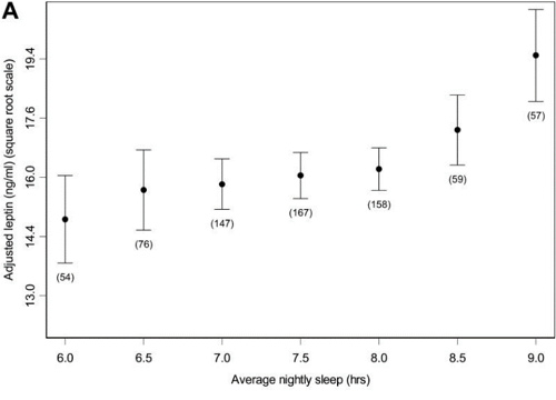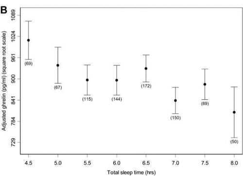 Taheri, S., Lin, L., Austin, D., Young, T., & Mignot, E. (2004). Short sleep duration is associated with reduced leptin, elevated ghrelin, and increased body mass index. PLoS medicine, 1(3), e62. https://doi.org/10.1371/journal.pmed.0010062