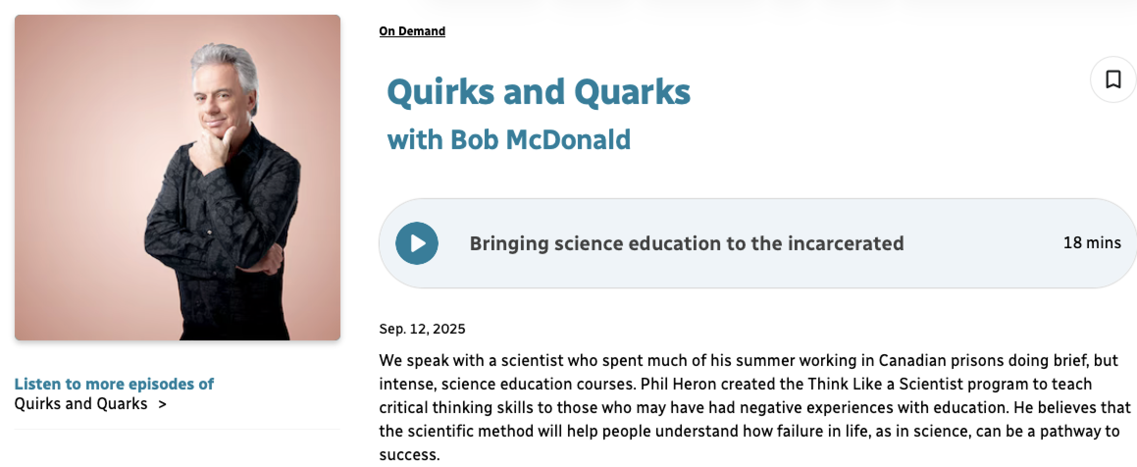 In 2025, CBC Quirks and Quarks did a feature on our work, shown here in a blog post and 18 minute audio clip – check out our segment here!